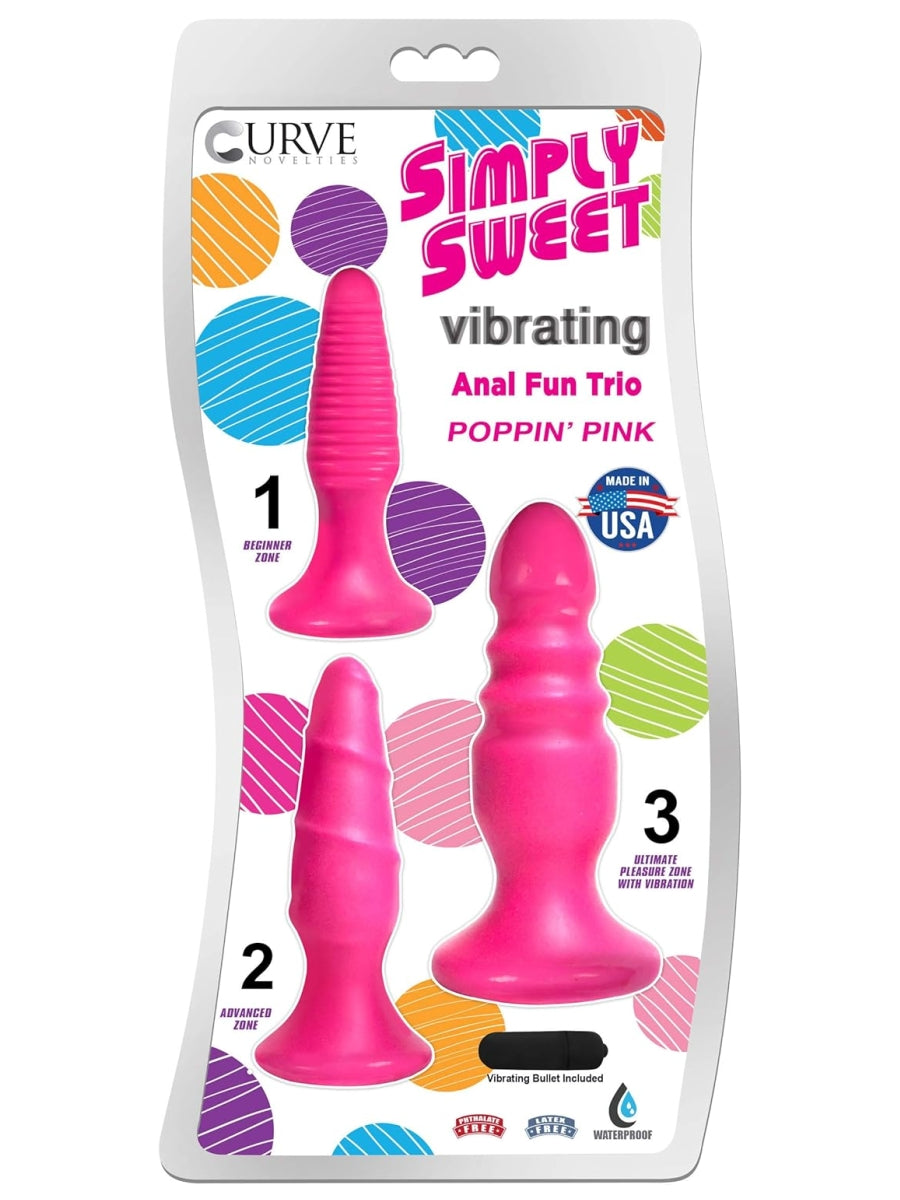 Curve Novelties Simply Sweet Vibrating Plug Trio – Three Pink Treats For A Naughty Backdoor Treat at PassionZone Adult Store