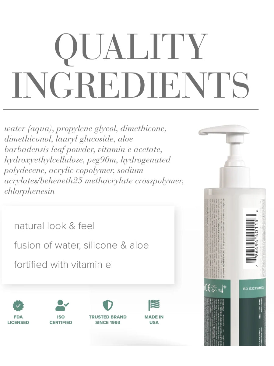 Hybrid formula – Fusion of water, silicone and aloe for the ideal balance of longevity and comfort.