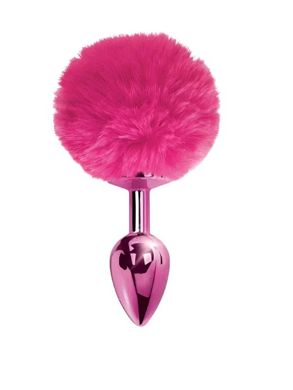 Metal Bunny Tail Anal Plug Pink Small