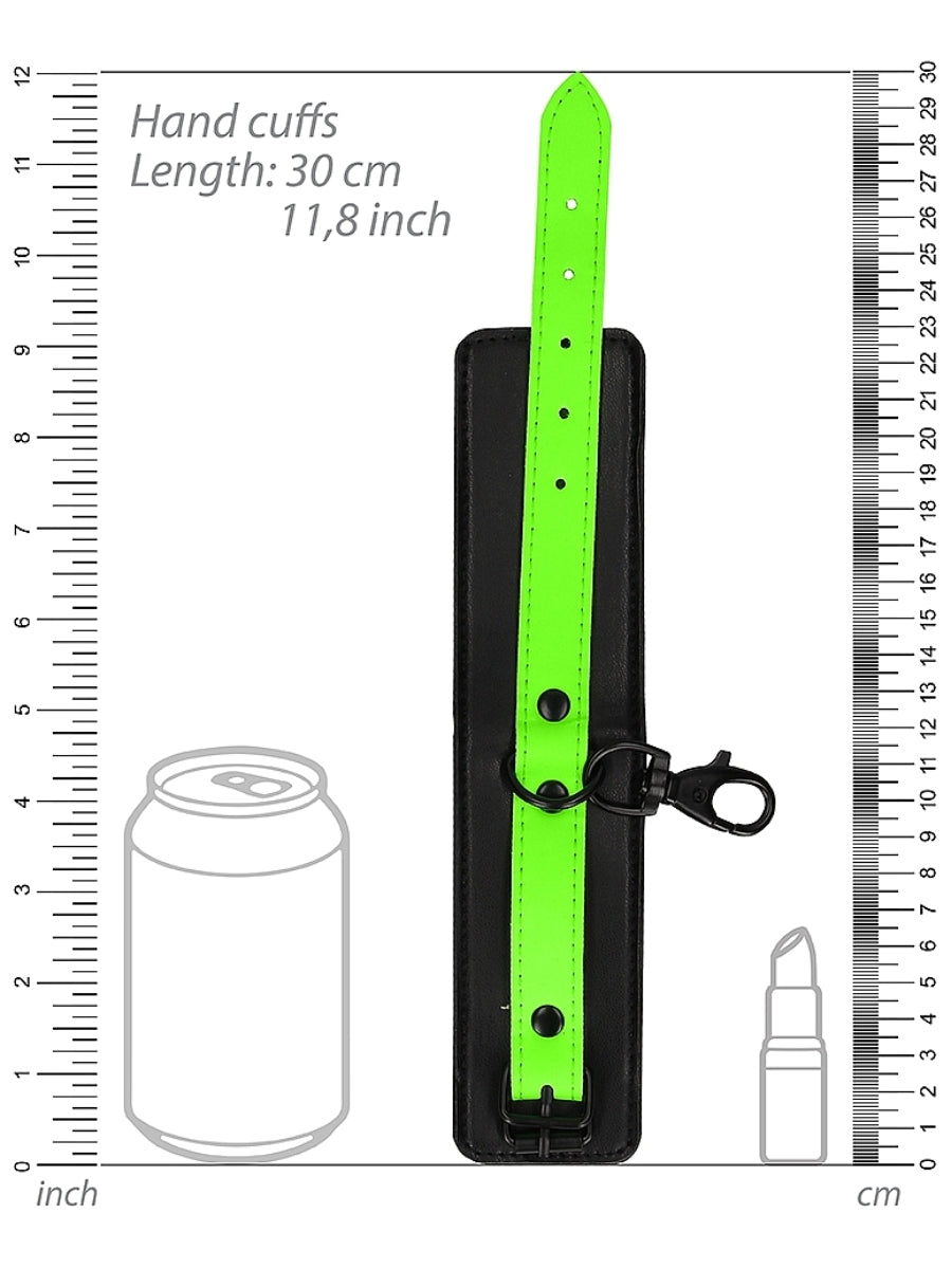 Ouch! Glow in the Dark Bonded Leather Hand & Ankle Cuffs with Hogtie – Neon-lit restraint for electrifying play at PassionZone Adult Store